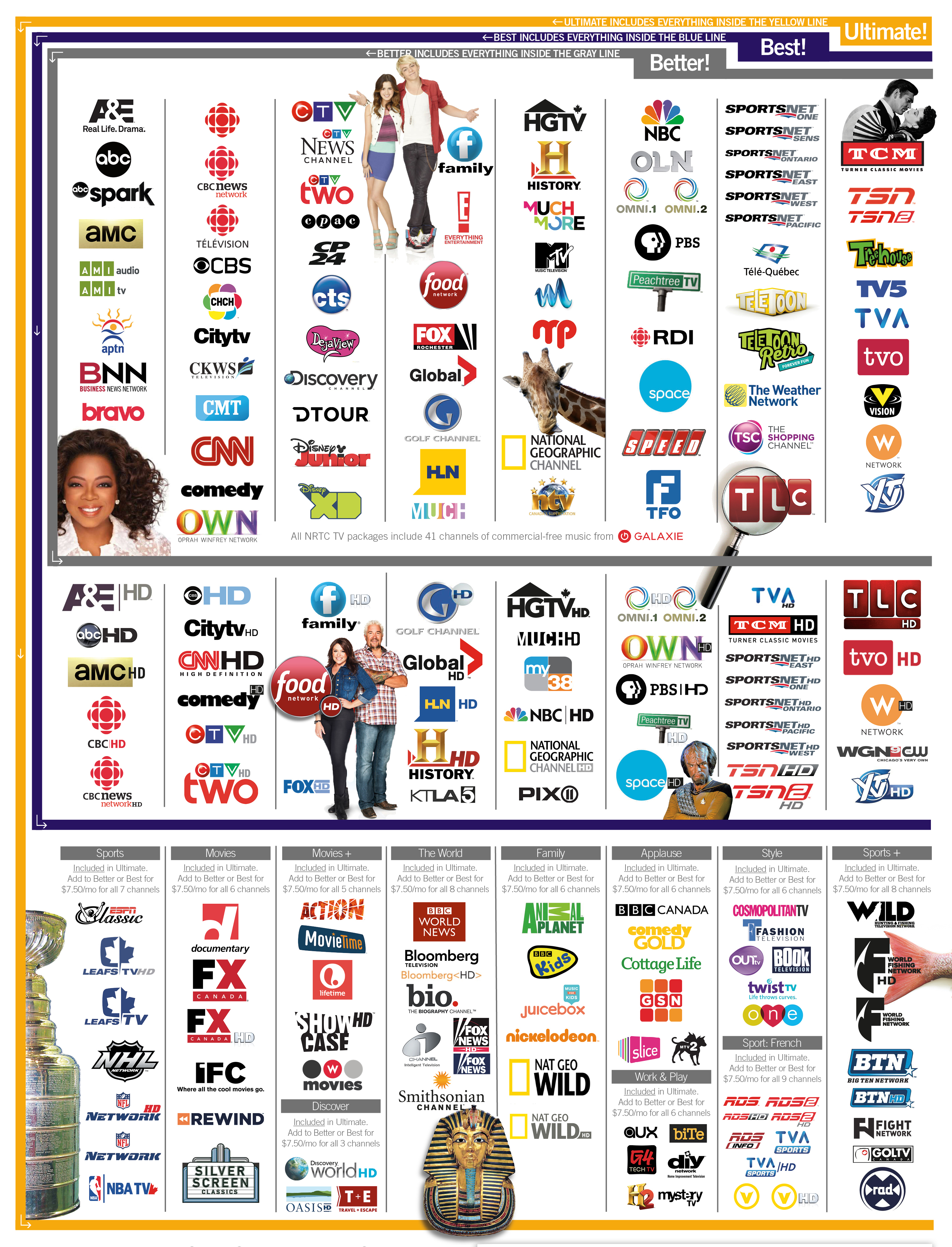 Bundles currently available in Beachburg, Westmeath, Lapasse and selected areas in Pembroke. Long-distance with these bundles is 4¢ per minute, 24 hours a day anywhere in North America. Installation and activation is currently waived with a 12-month contract for new or current customers upgrading to the Better, Best or Ultimate plans. Prices based on installation of 1 TV. Extra TV installation $50 each. Extra set top box $5.00/month. NRTC HD hardware required to view HD content on your HD TV. On-screen Caller ID requires selection of Caller ID as a phone calling feature. Download speeds can vary depending on a variety of factors. All prices are subject to change without notice and do not include long distance or taxes.